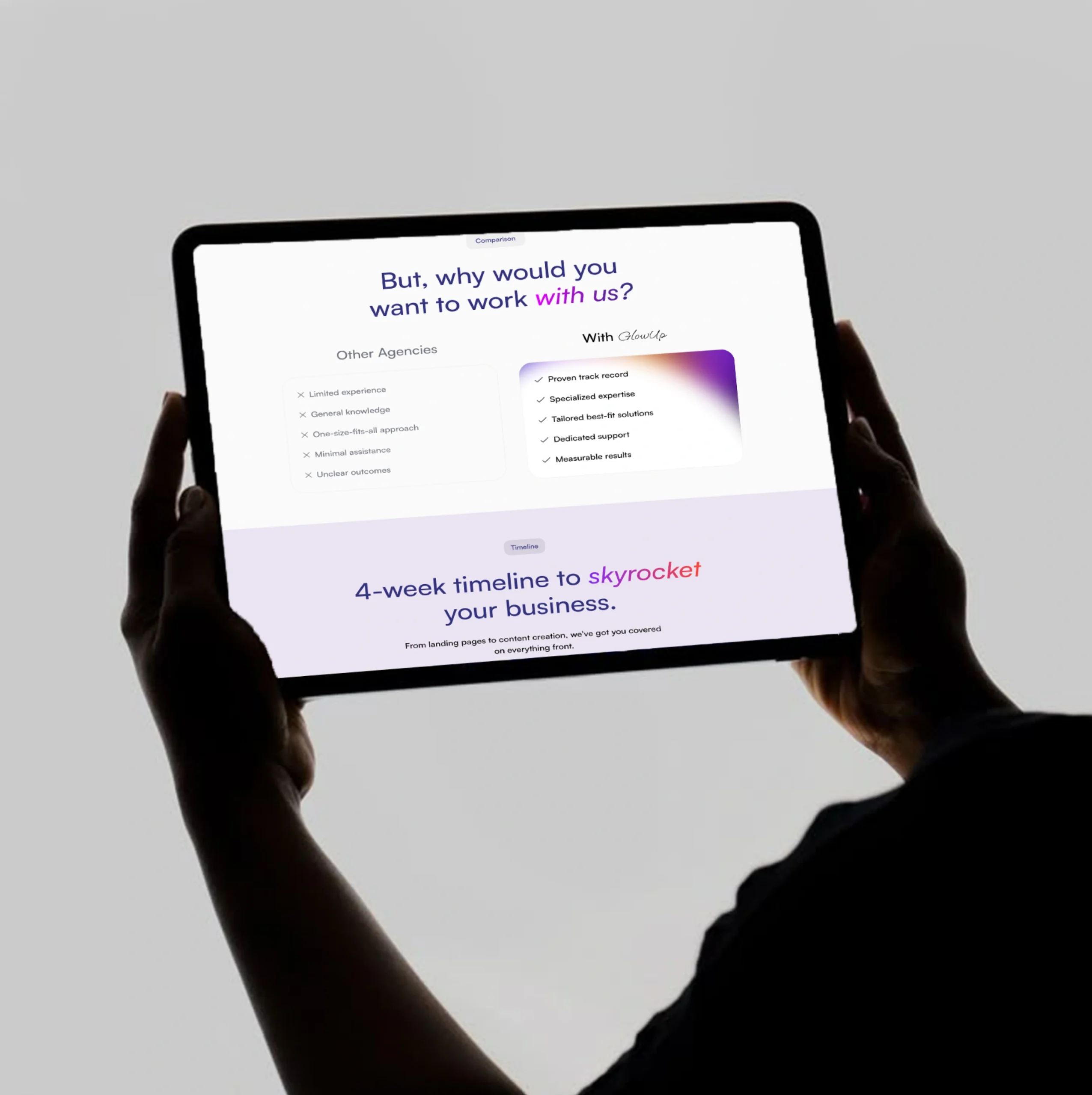 Glow Up partnered with us to create a refined, high-performance landing experience built to educate, engage, and convert visitors into loyal customers. The goal was to translate a compelling beauty solution into a seamless, persuasive user journey — with clarity, trust, and impact at every step.